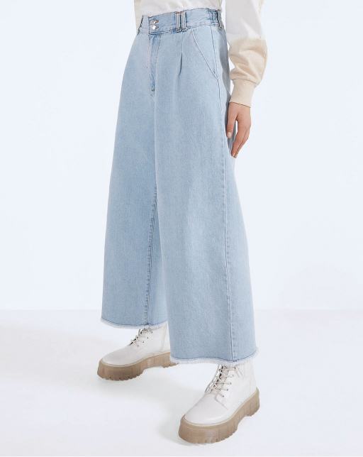 Culotte jeans with frayed hems