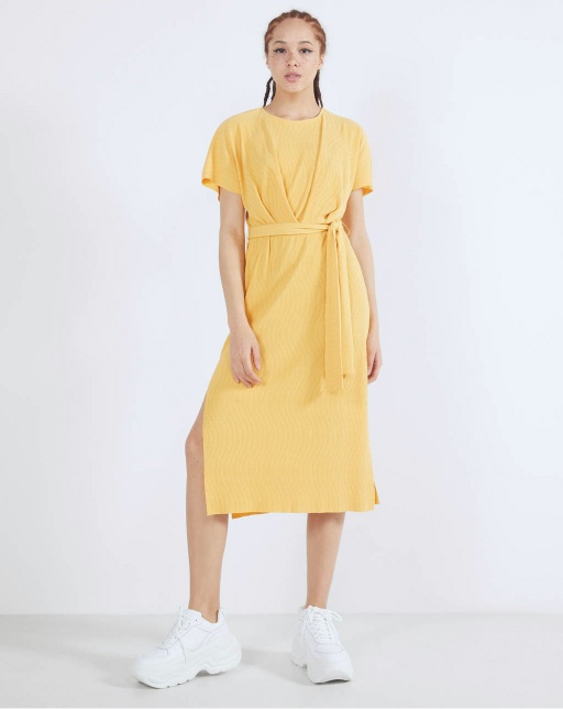 Midi dress with belt